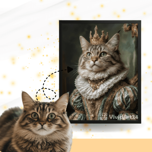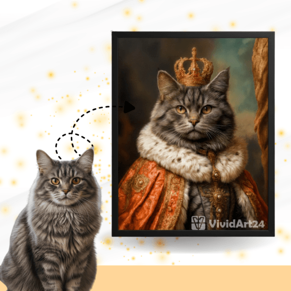 Създай незабравим портрет на своята котка с VividArt24 – там, където всяка картина с котка оживява с артистична интерпретация и внимание към всеки детайл. Избери между стилове – от реалистични и артистични до забавни и исторически визии.