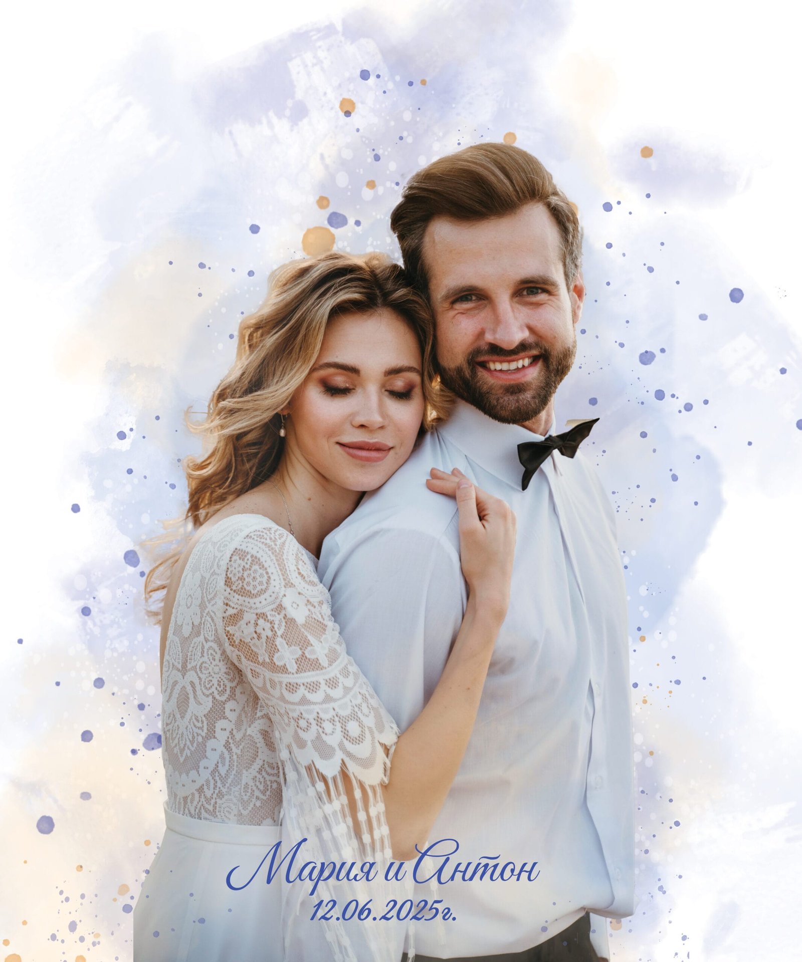 Съберете любимите си моменти в един уникален акварелен колаж по снимки. Всяка композиция се изработва дигитално с артистичен ефект, а след това може да бъде отпечатана върху канава или постер – емоционален акцент за дома или специален подарък.