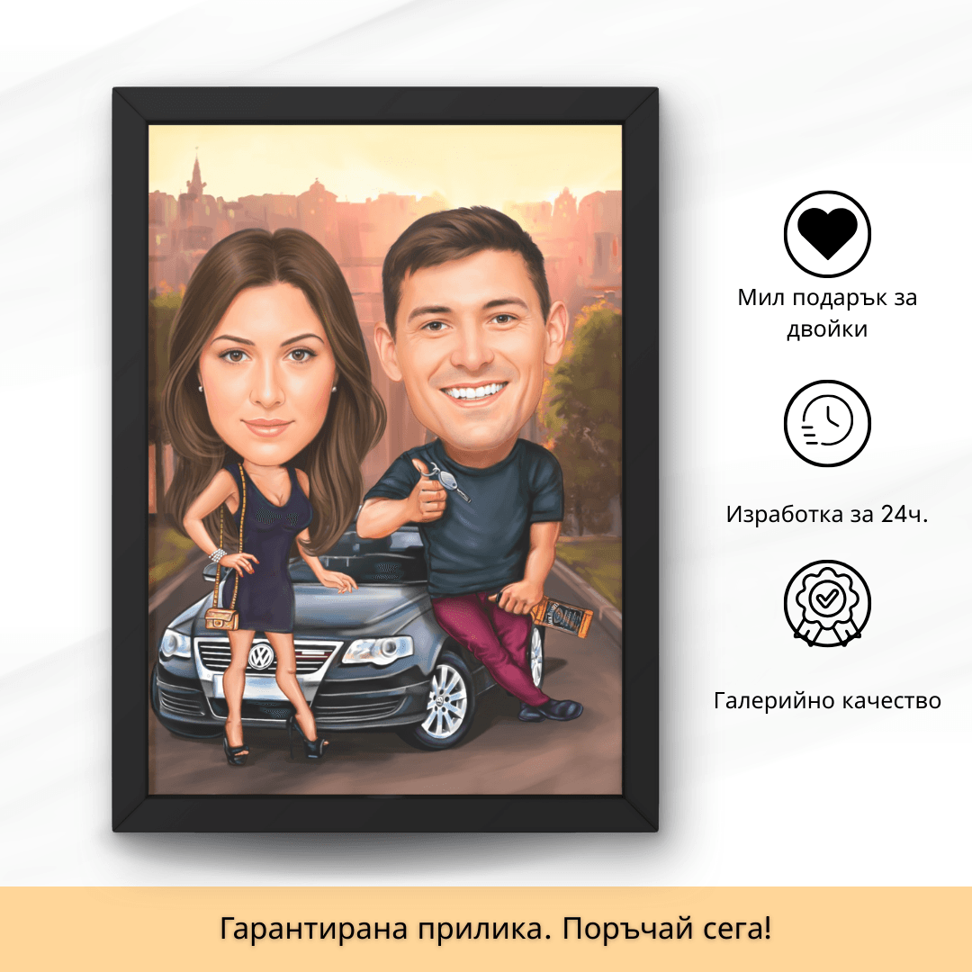 Бъдете първият написал отзив за “Карикатура на Двойка с Любима Марка Кола”