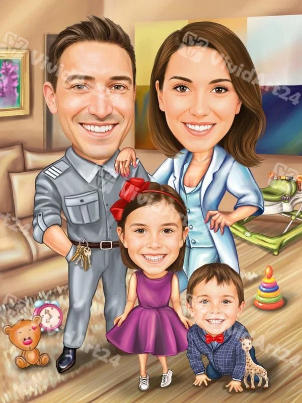 Семейна карикатура по снимка – забавен и персонализиран начин да запазите спомените си. Нашите художници превръщат снимките ви в уникална илюстрация с хумористичен и артистичен стил. Подходяща за подарък или като оригинална декорация за дома, семейната карикатура е спомен, който винаги ще носи усмивки.