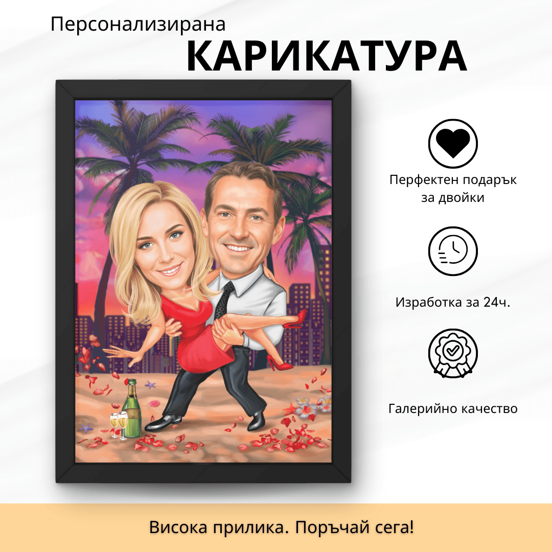 Карикатура на двойка по снимка – забавен и романтичен начин да покажете любовта си. Персонализирана илюстрация, създадена по ваши снимки, която улавя настроението и характера ви. Идеална за подарък за годишнина, Свети Валентин или специален повод.