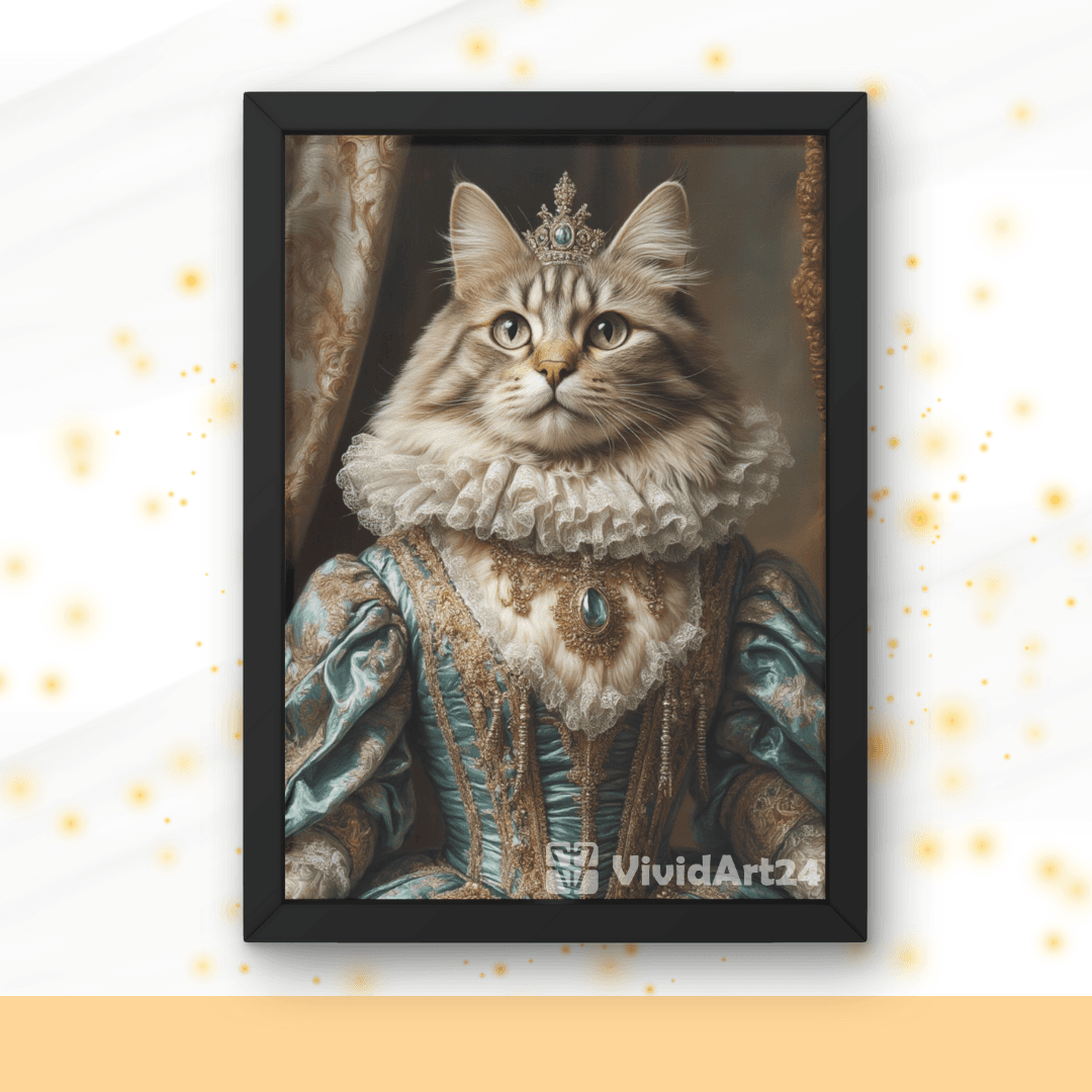 Превърни снимката на своята котка в царствен портрет с тюркоазена рокля, златна бродерия и блестящи бижута.