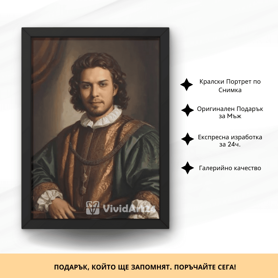 Превърнете снимка в изкуство с персонализиран портрет на мъж по снимка в кралски стил – създаден дигитално с внимание към детайла. Подходящ за подарък или уникална декорация, този портрет подчертава сила, стил и благородство
