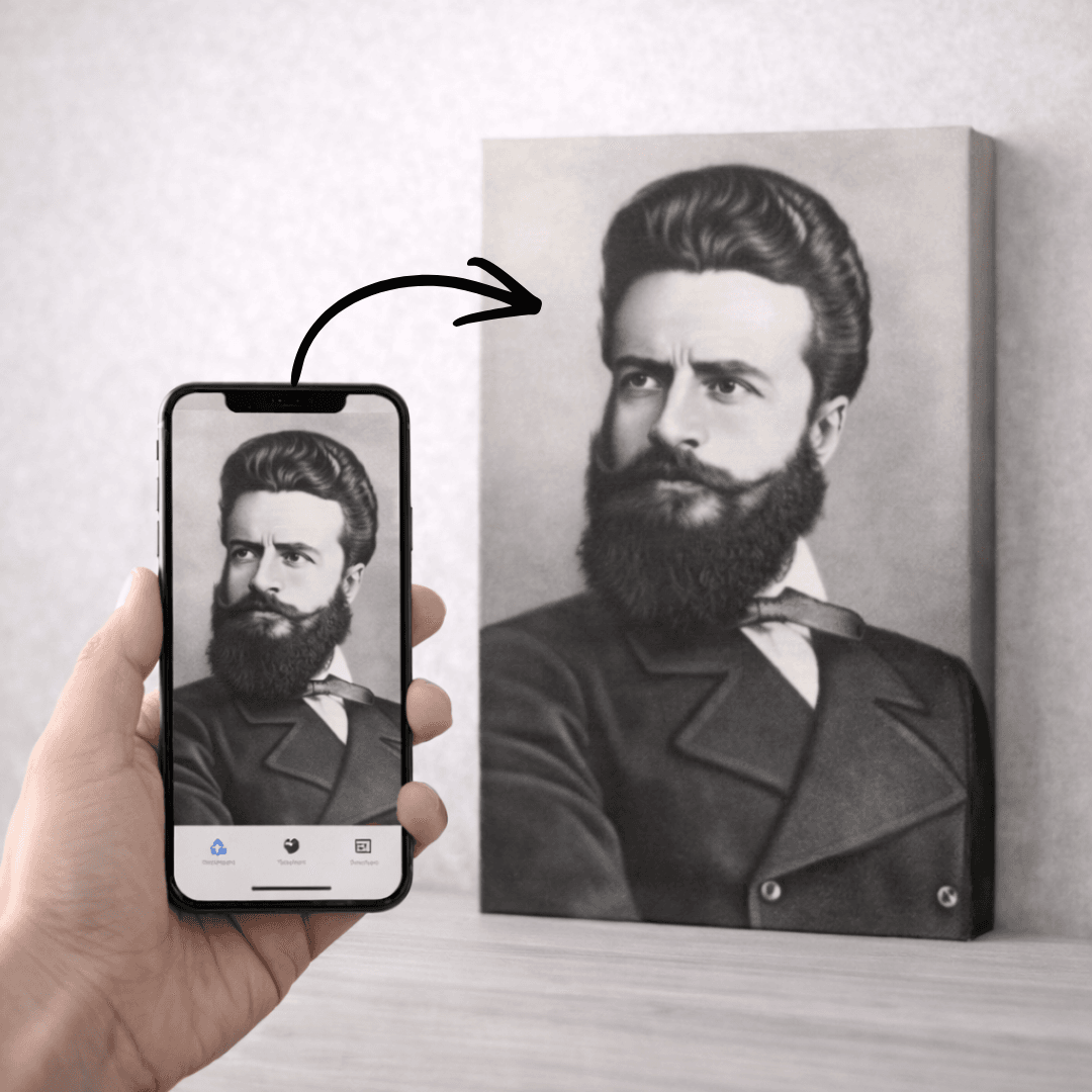 Ти ни изпращаш снимка по избор – портрет на Васил Левски, Христо Ботев, български символ или исторически образ, а ние я отпечатваме върху висококачествена канава, с внимание към детайла и автентичен галериен вид.
