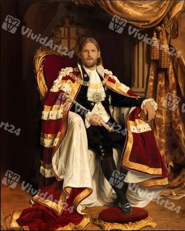 Превърнете снимка в изкуство с персонализиран портрет на мъж по снимка в кралски стил – създаден дигитално с внимание към детайла. Подходящ за подарък или уникална декорация, този портрет подчертава сила, стил и благородство