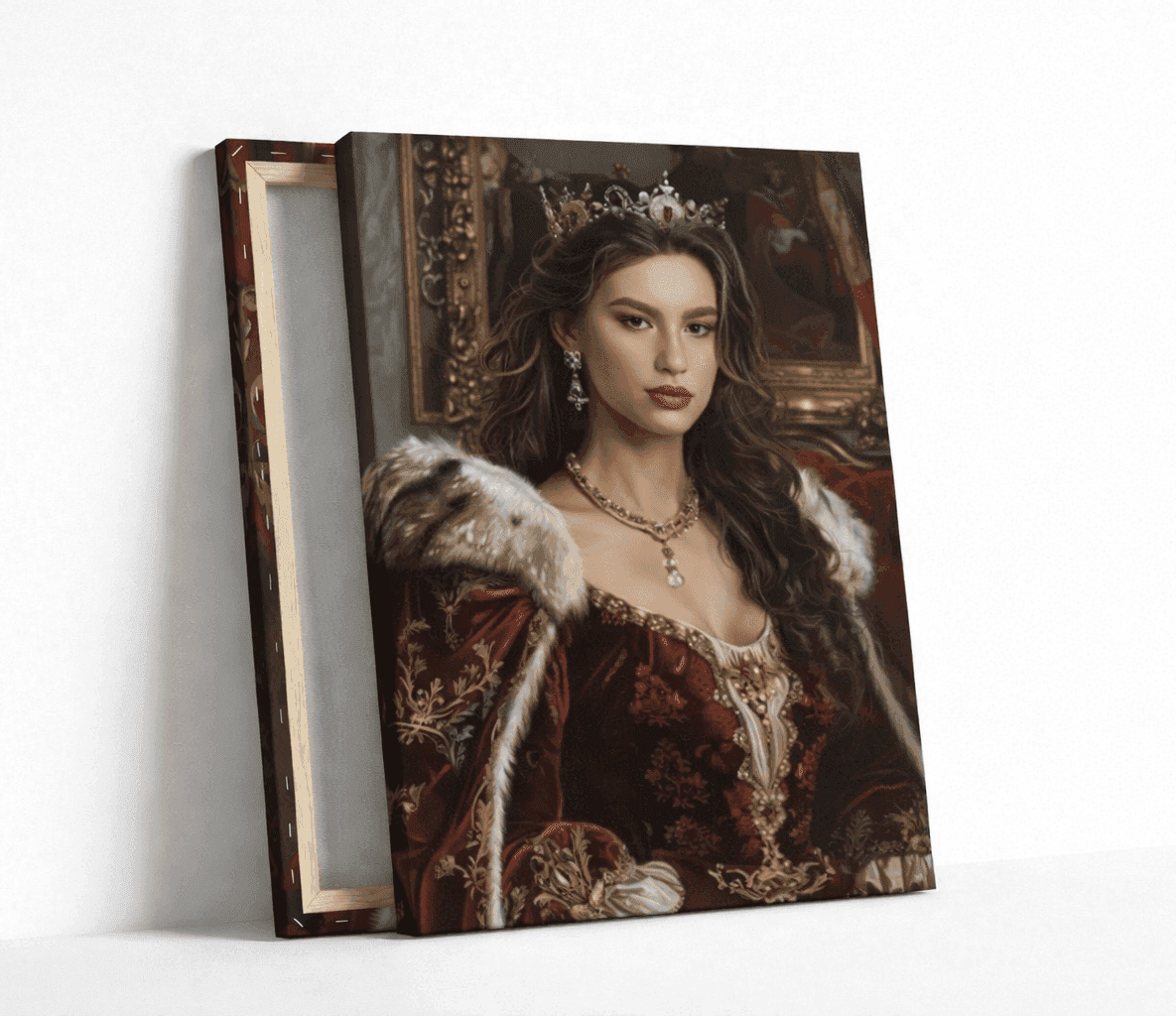 Превърнете своя снимка в изкуство с персонализиран портрет на жена в кралски стил. Нашите художници създават дигитални илюстрации с корона, трон, ренесансова или барокова рокля, които подчертават изящество и благородство. Идеален подарък за специален повод или елегантна декорация за дома.