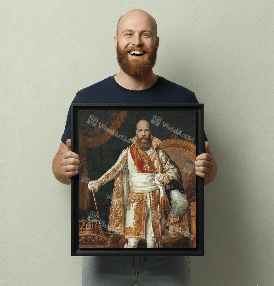 Превърнете снимка в изкуство с персонализиран портрет на мъж по снимка в кралски стил – създаден дигитално с внимание към детайла. Подходящ за подарък или уникална декорация, този портрет подчертава сила, стил и благородство