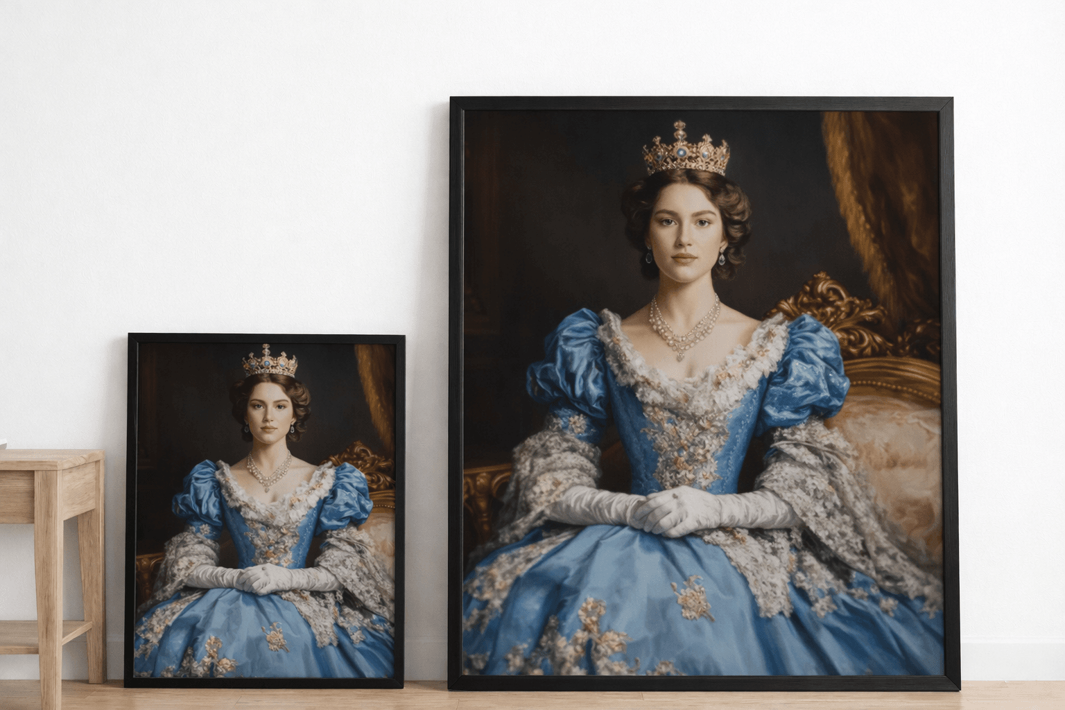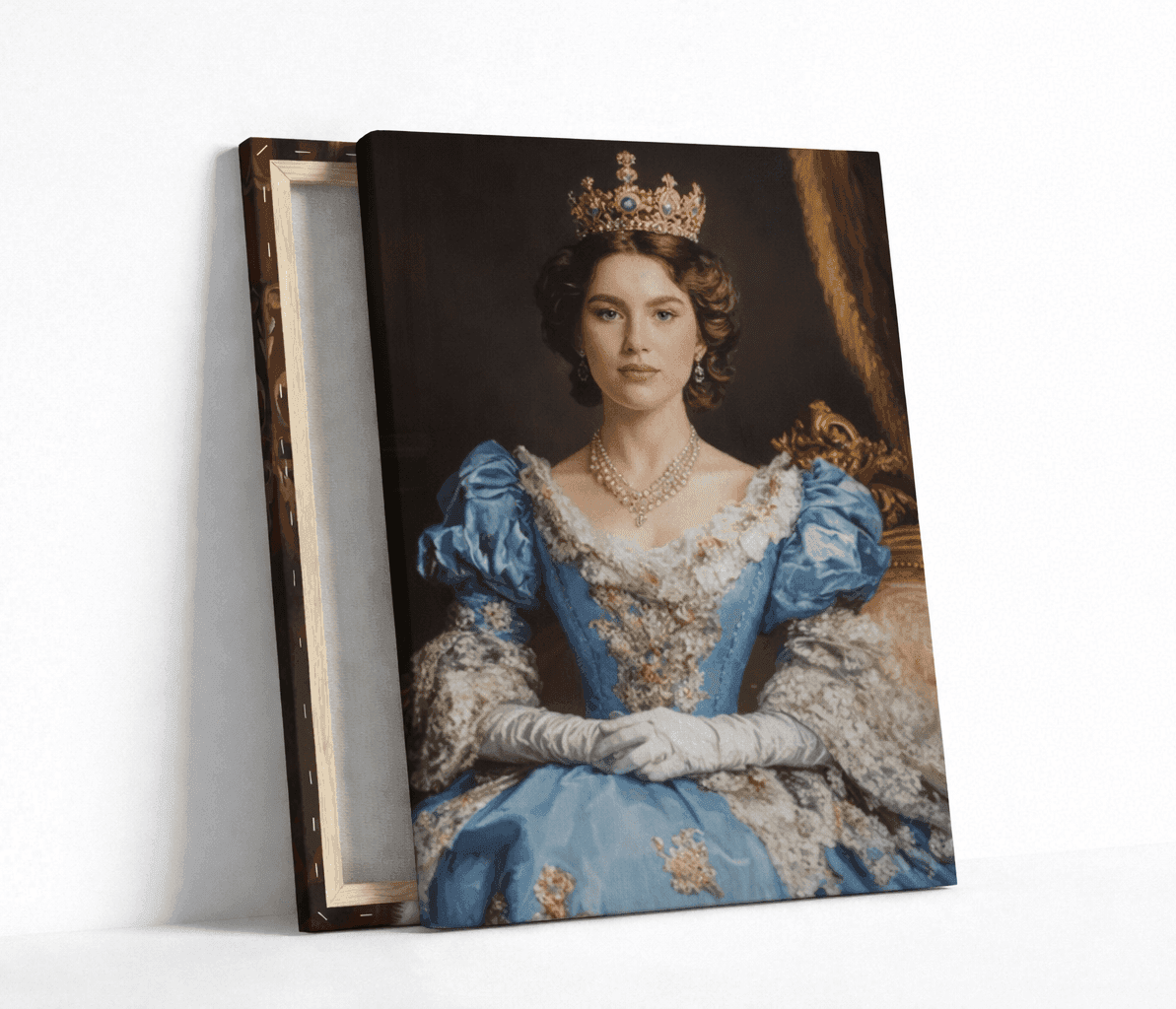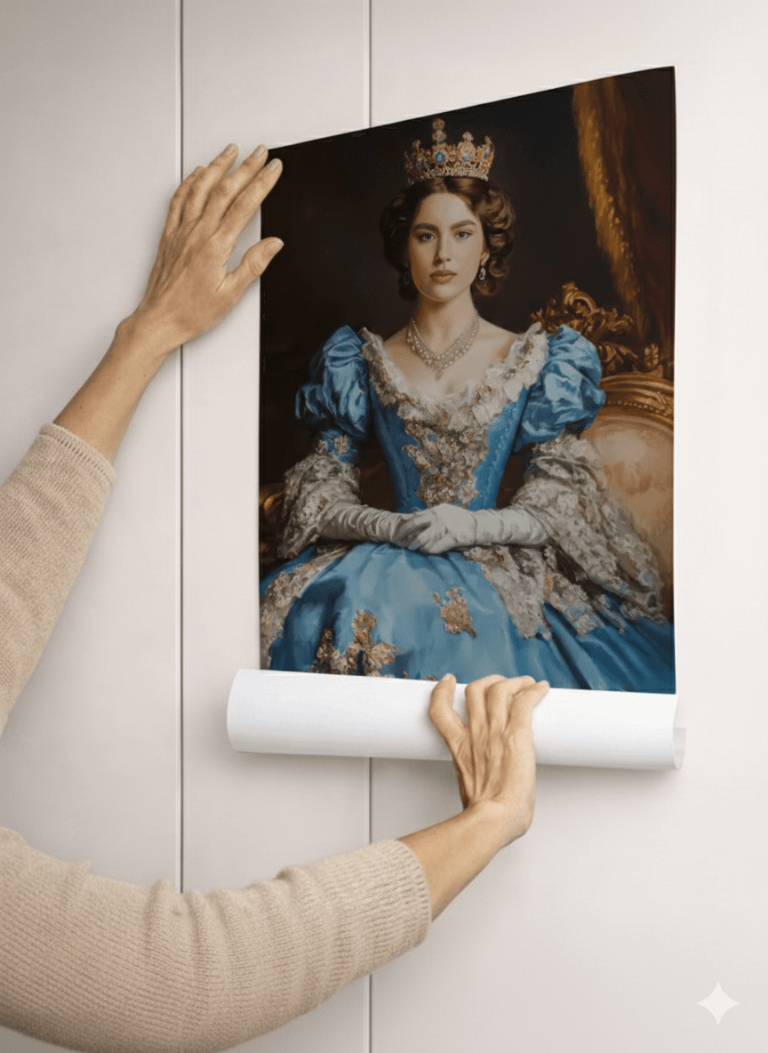 Превърнете своя снимка в изкуство с персонализиран портрет на жена в кралски стил. Нашите художници създават дигитални илюстрации с корона, трон, ренесансова или барокова рокля, които подчертават изящество и благородство. Идеален подарък за специален повод или елегантна декорация за дома.